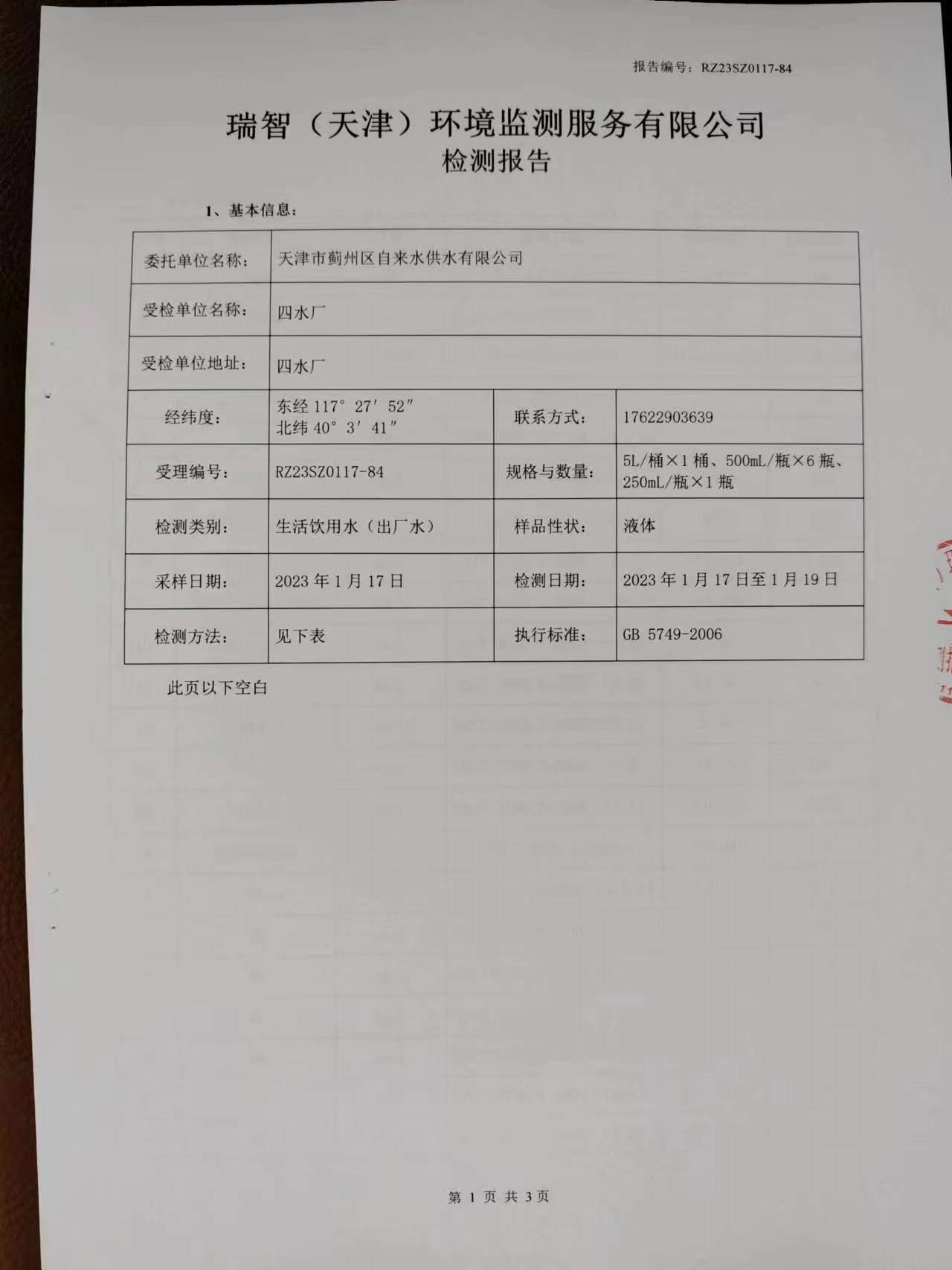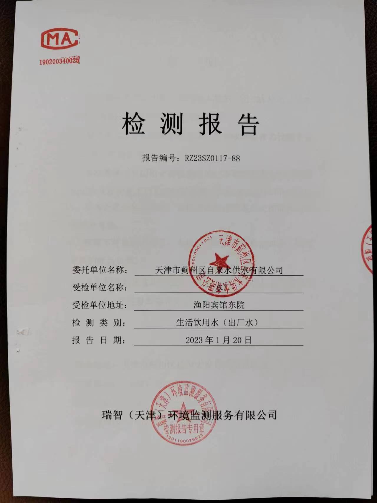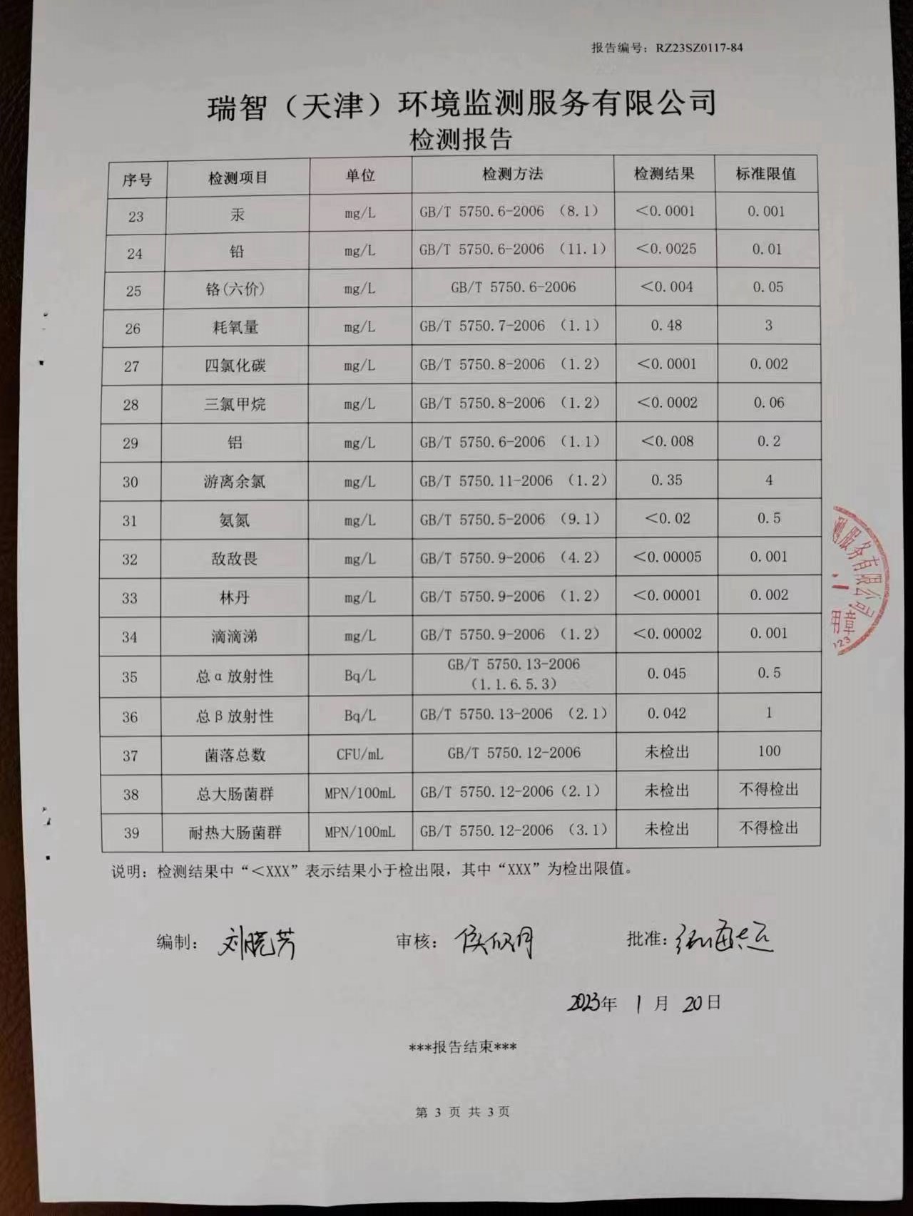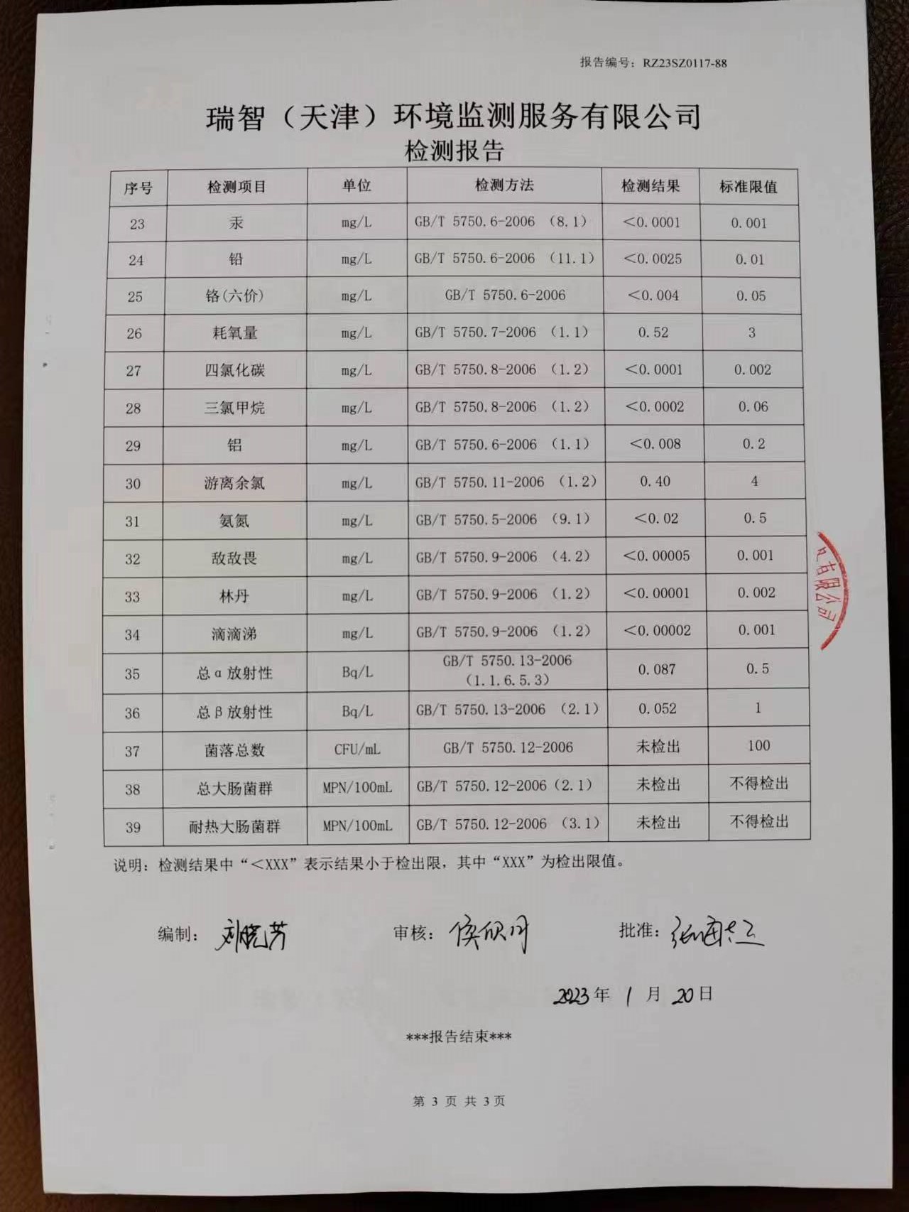 2023年1月份水質(zhì)檢測(cè)報(bào)告
