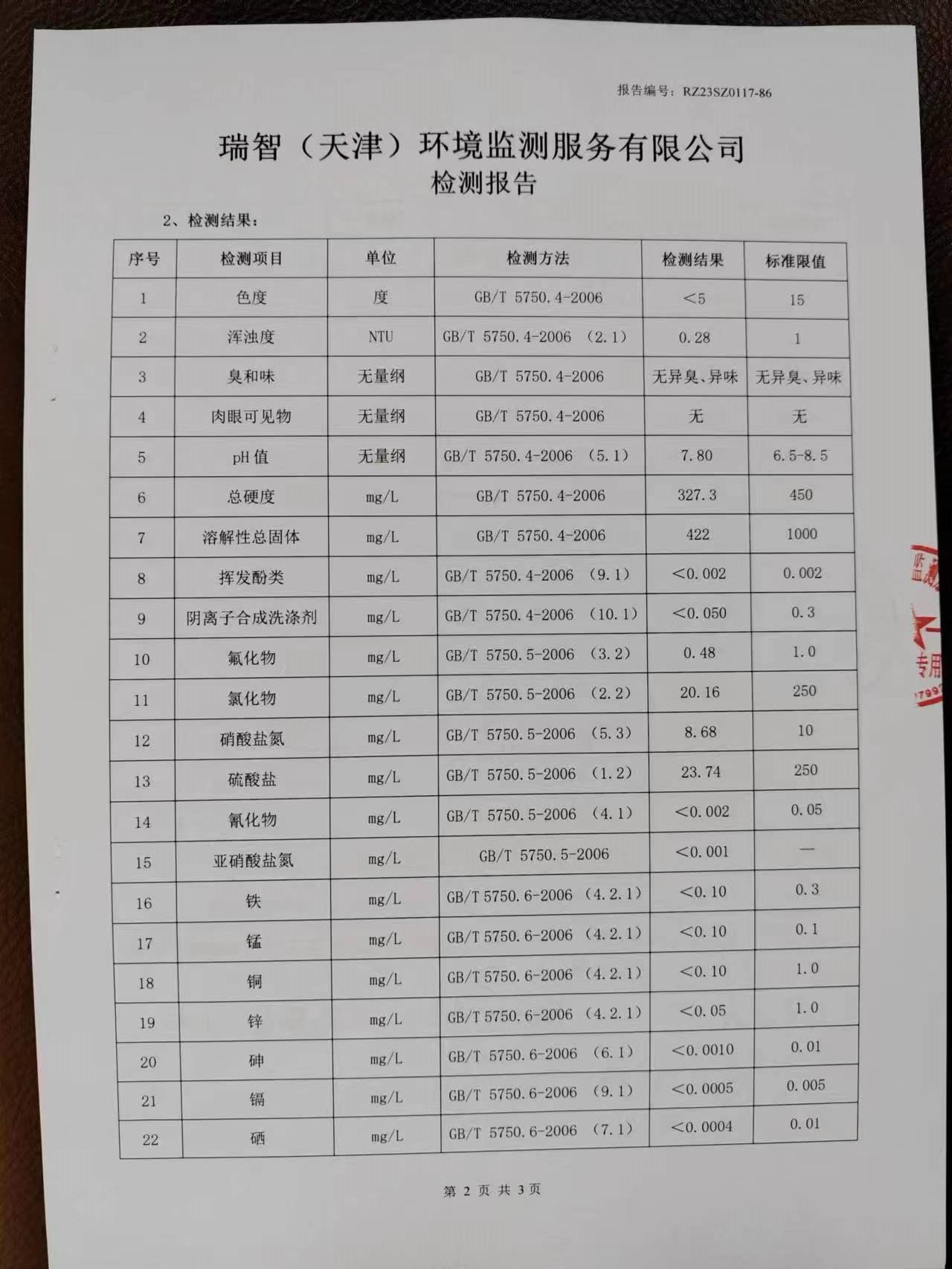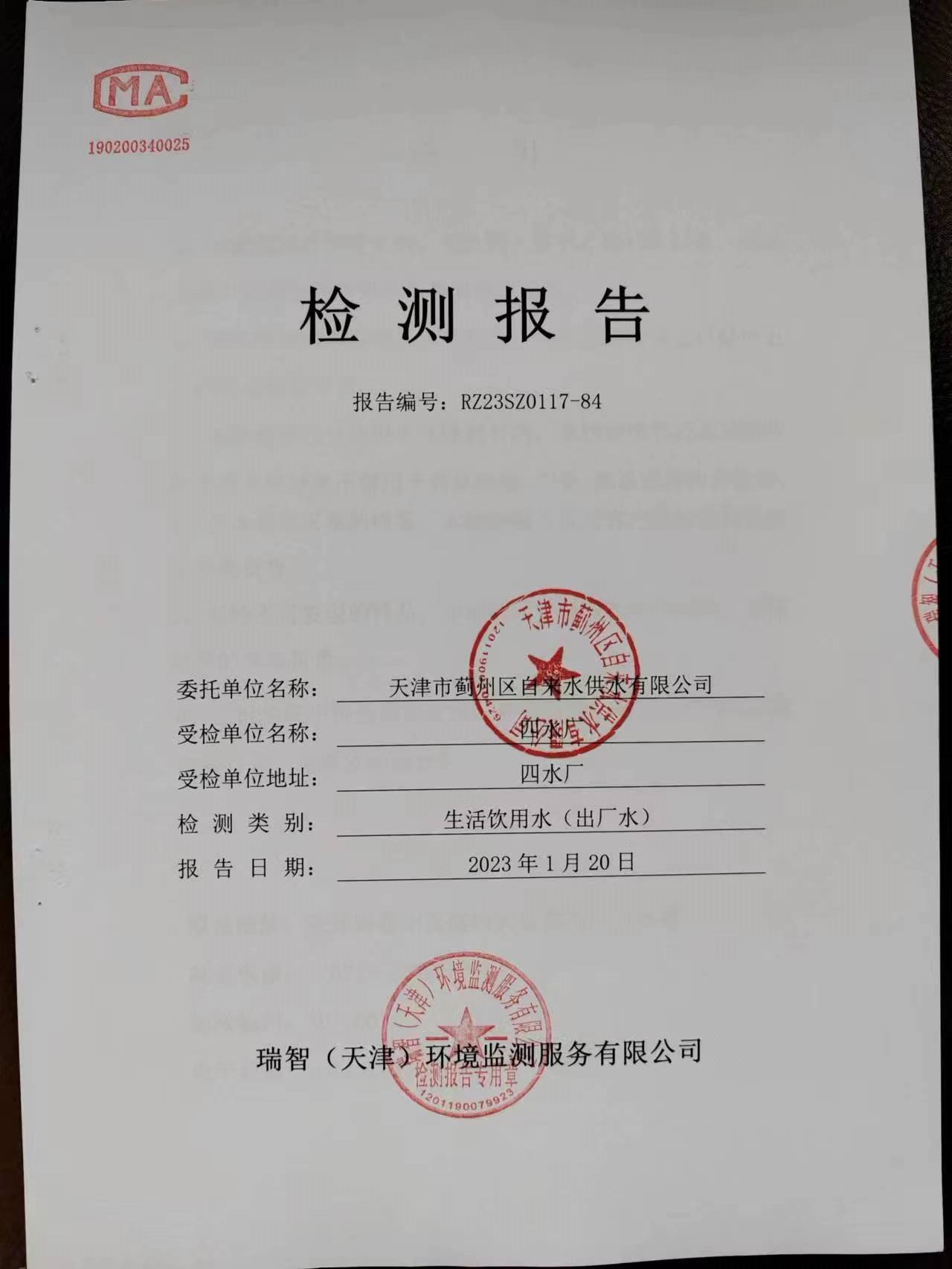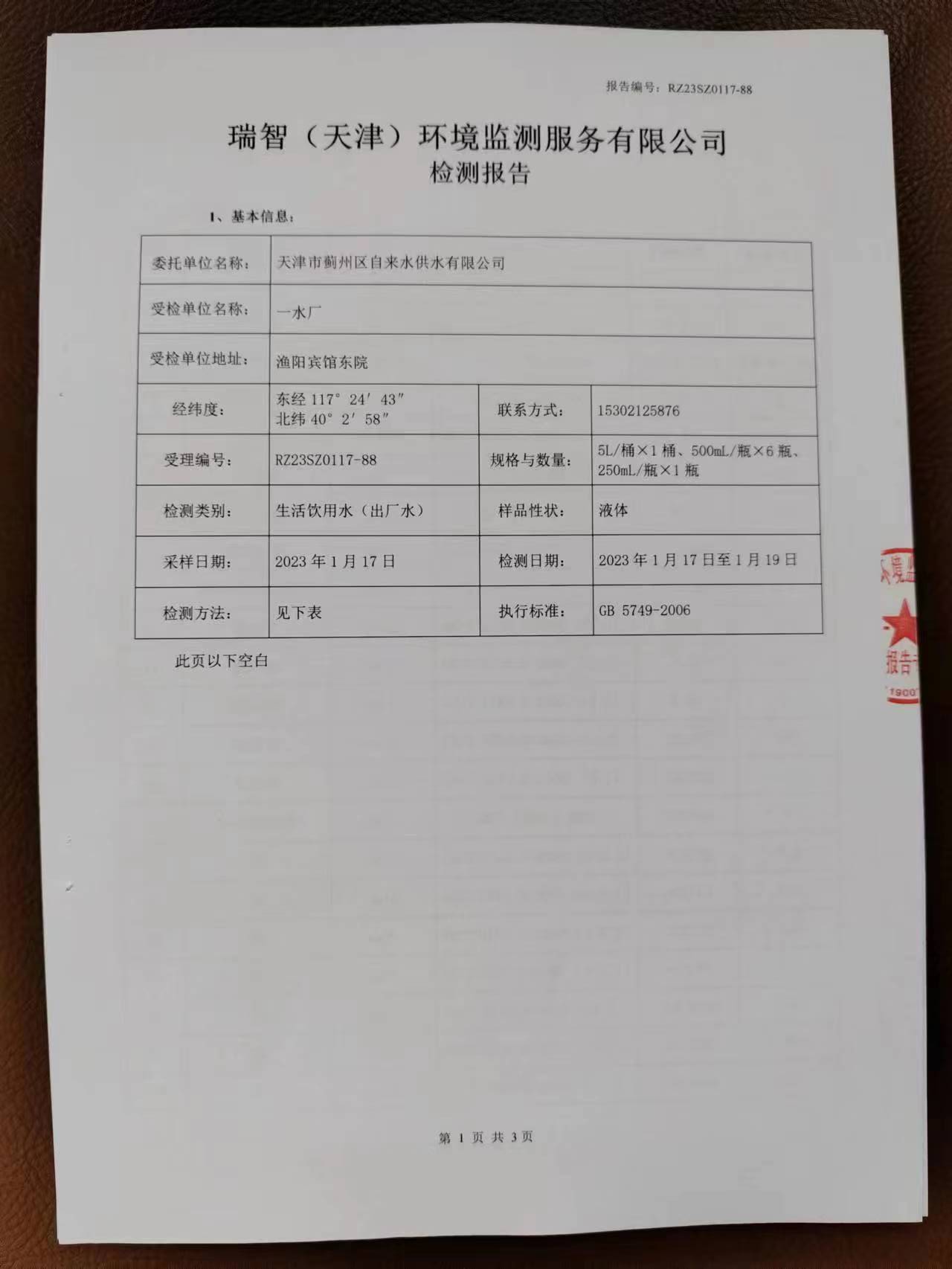 2023年1月份水質(zhì)檢測(cè)報(bào)告