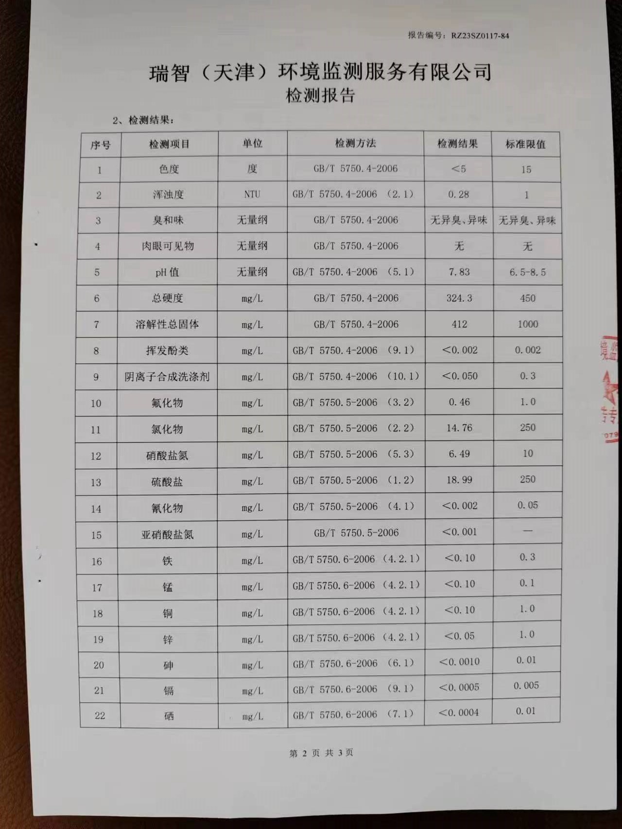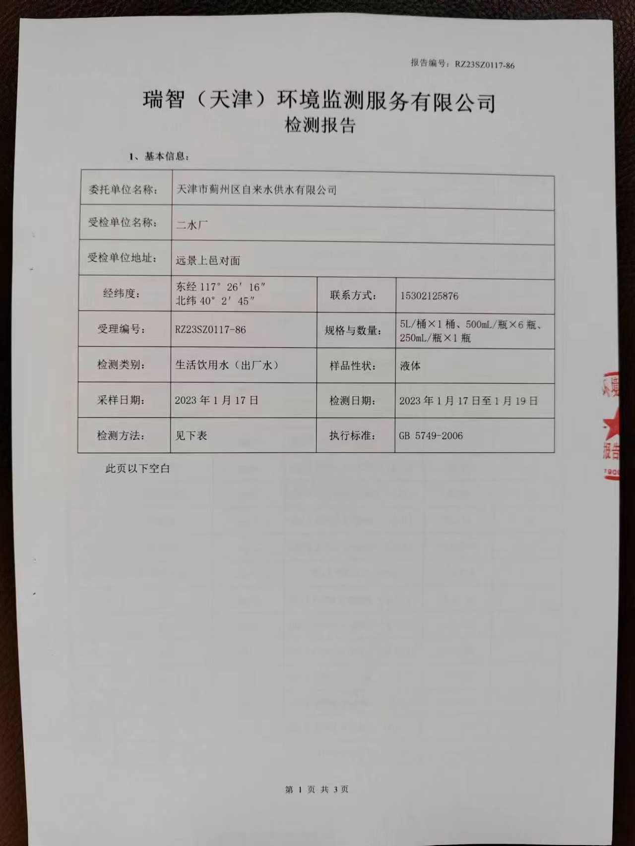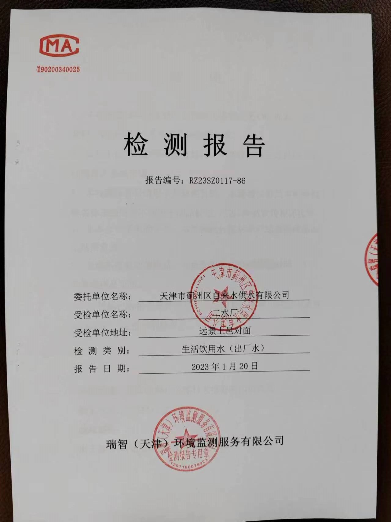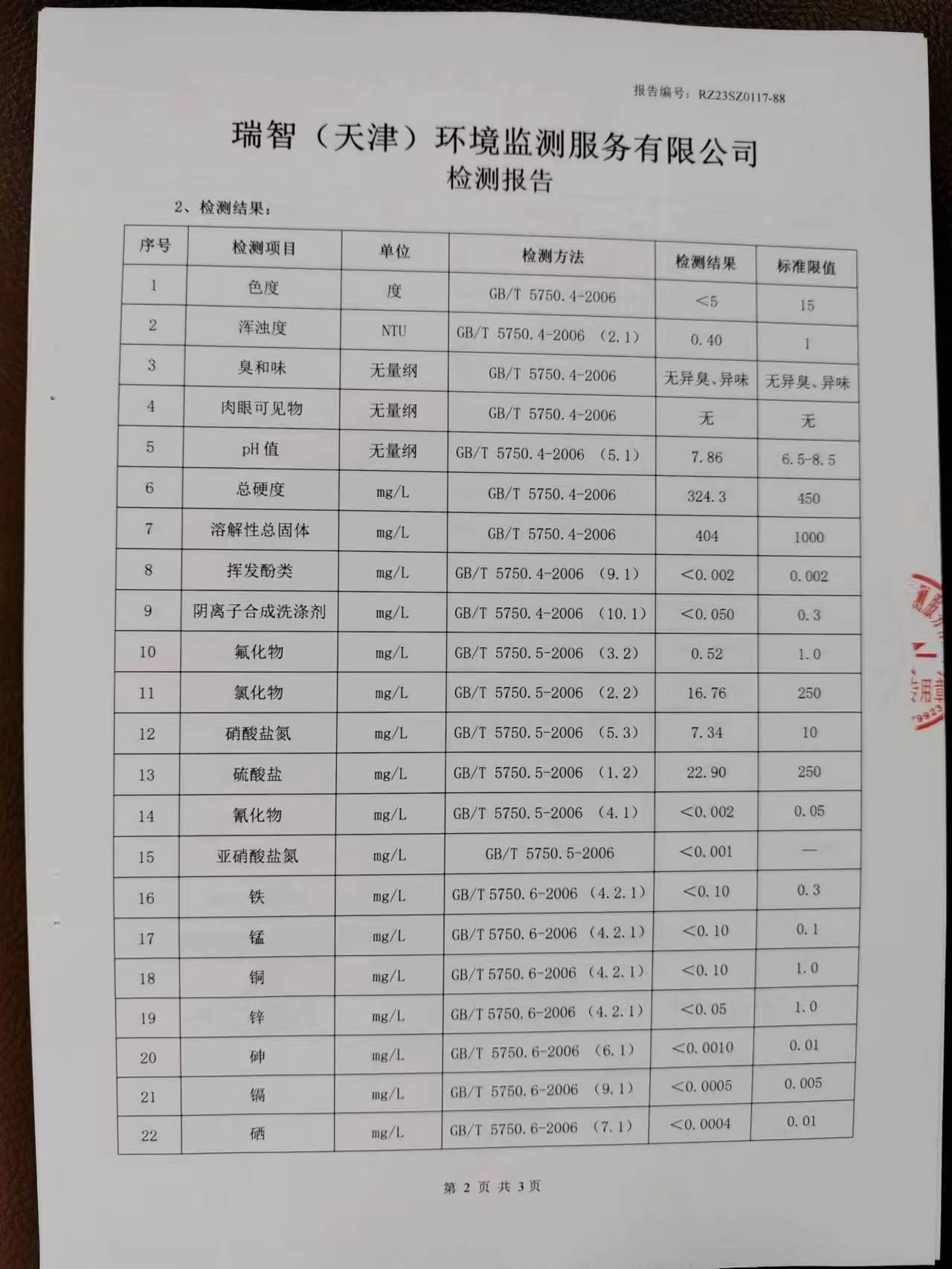 2023年1月份水質(zhì)檢測(cè)報(bào)告