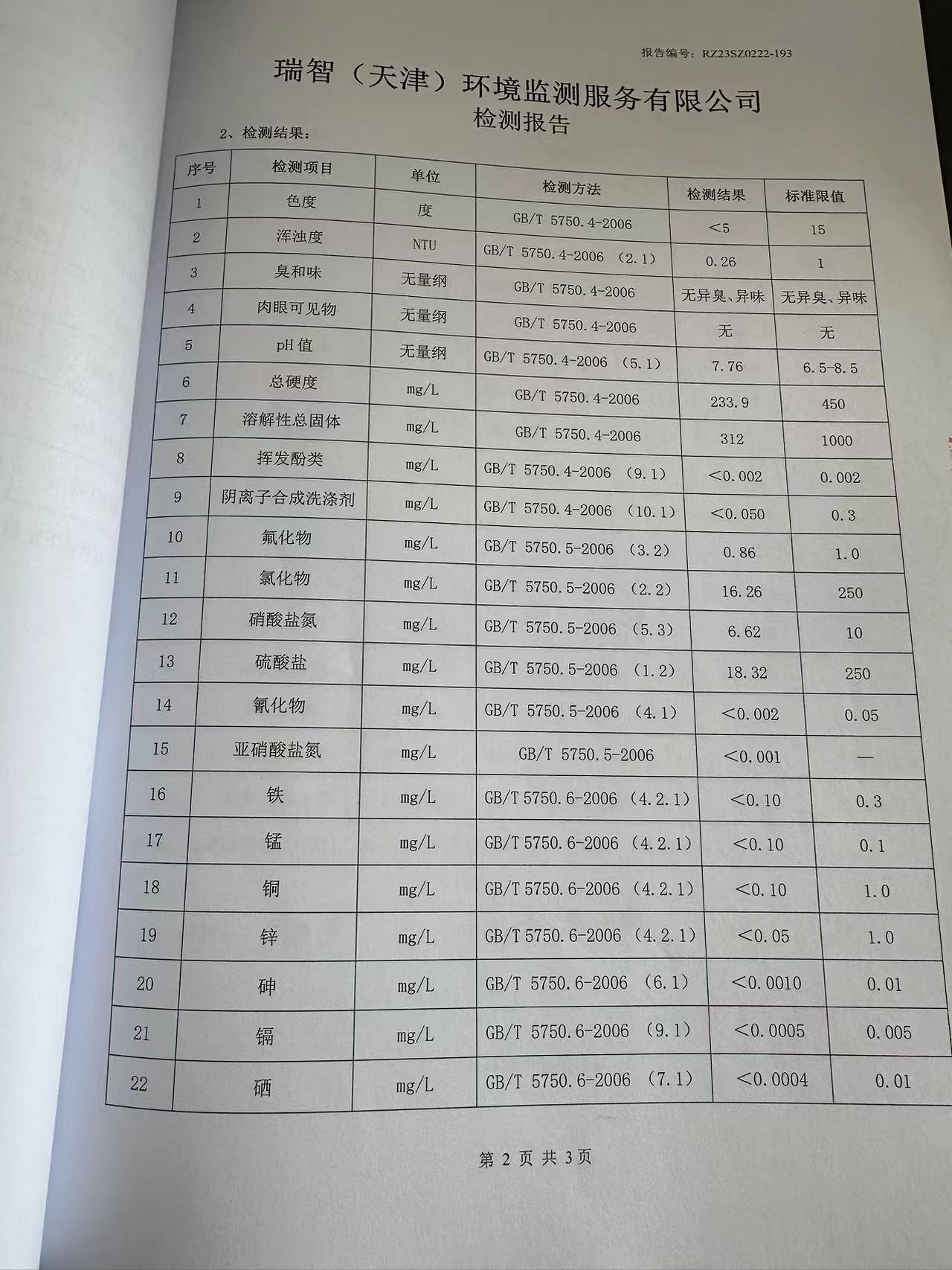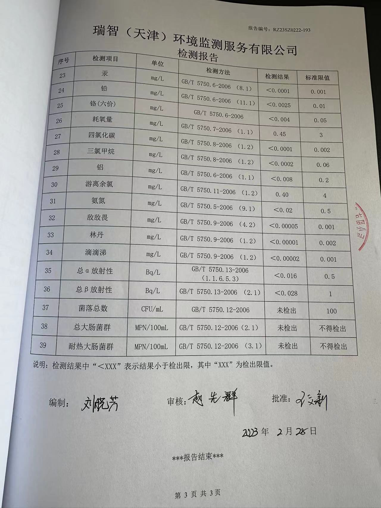 2023年2月份水質(zhì)檢測(cè)報(bào)告