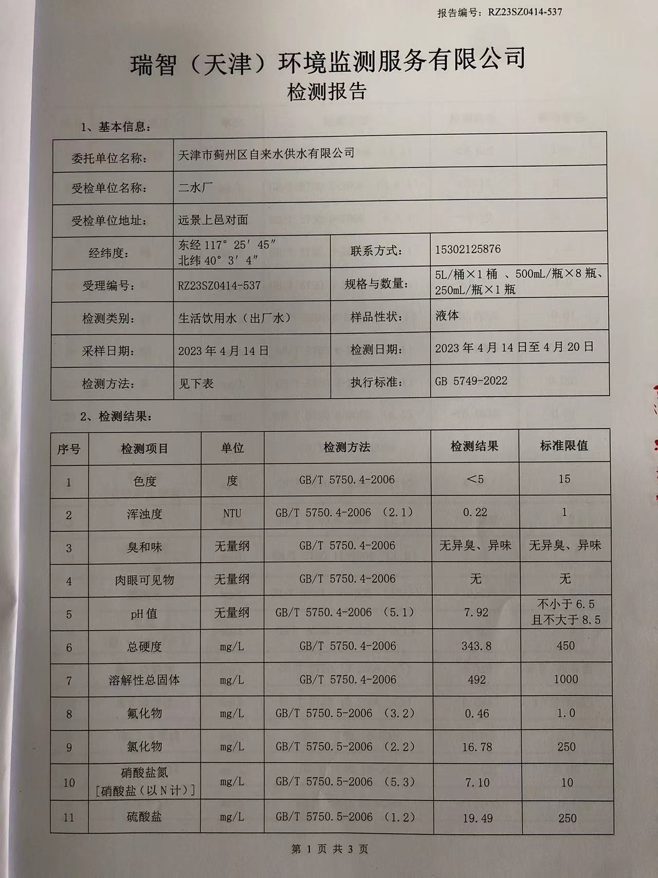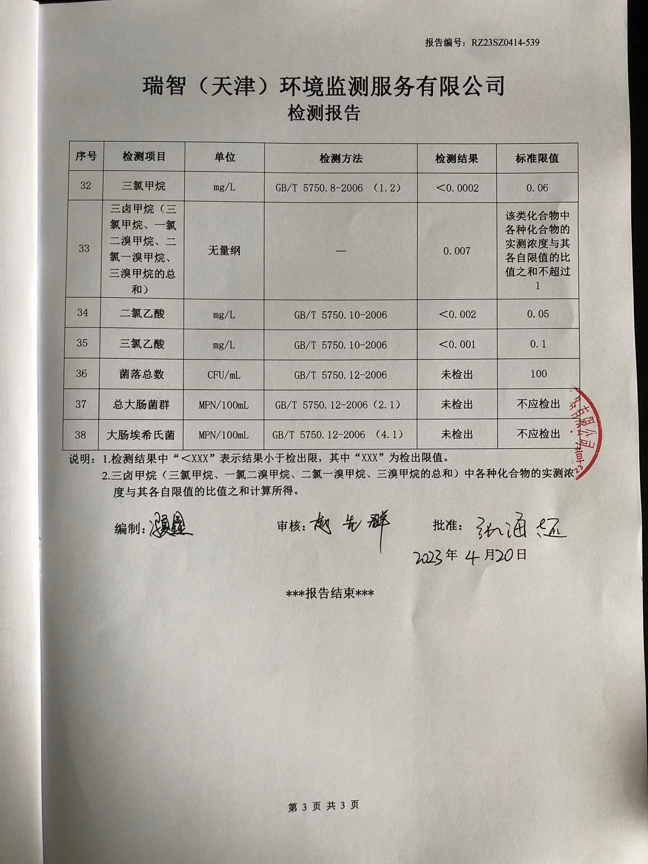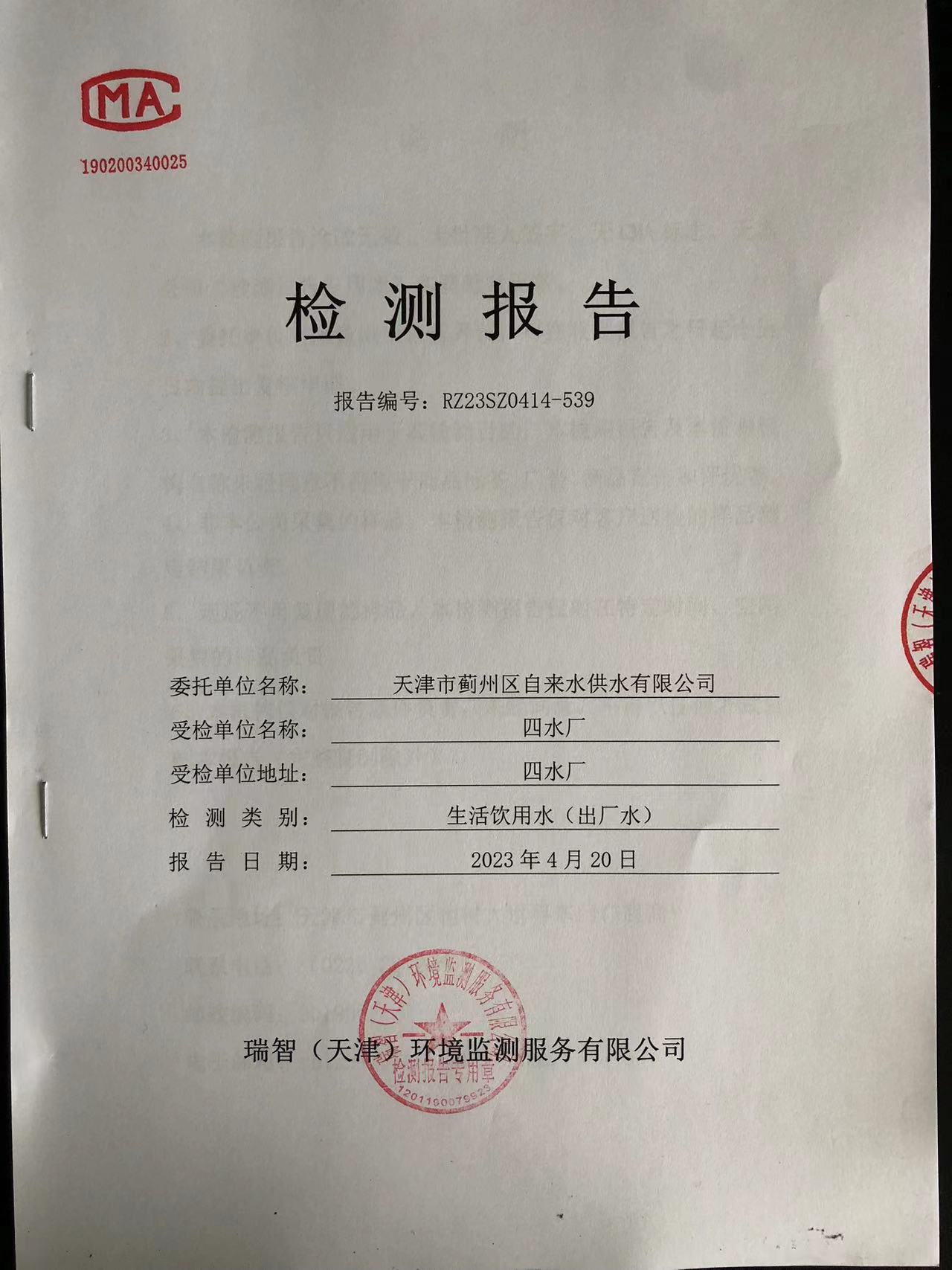 2023年4月份水質(zhì)檢測(cè)報(bào)告