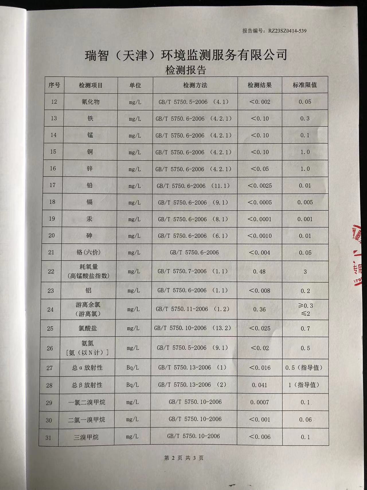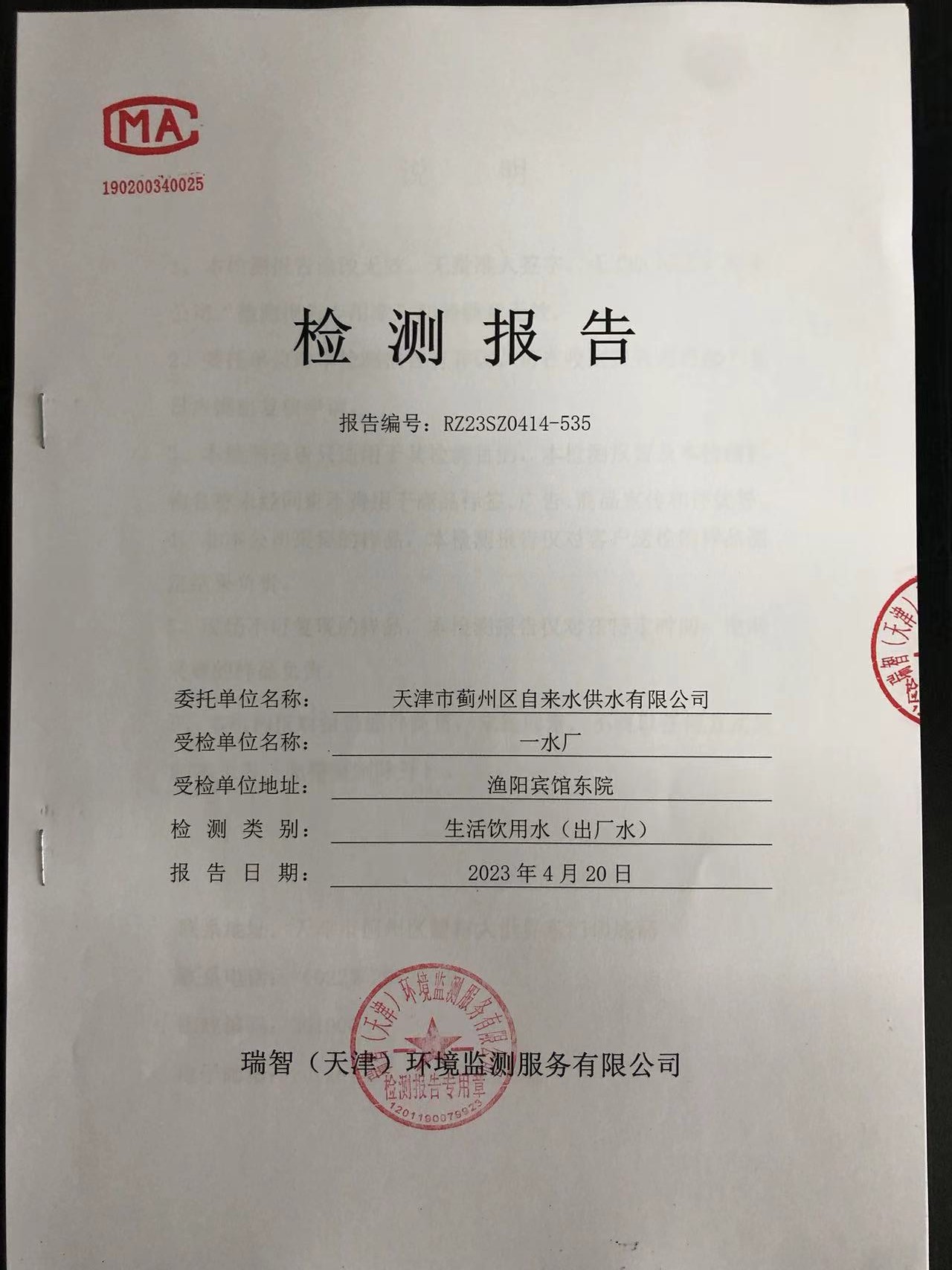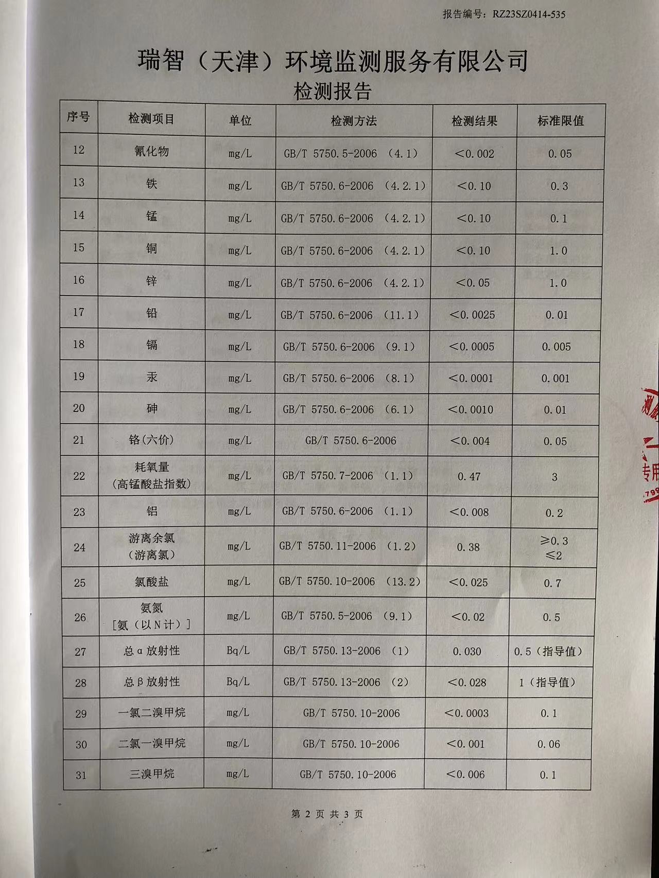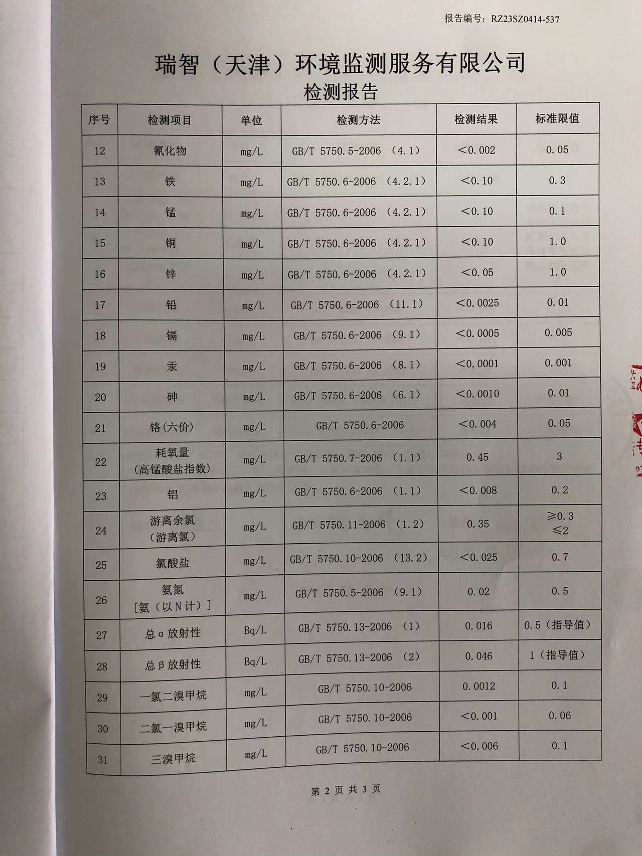 2023年4月份水質(zhì)檢測(cè)報(bào)告