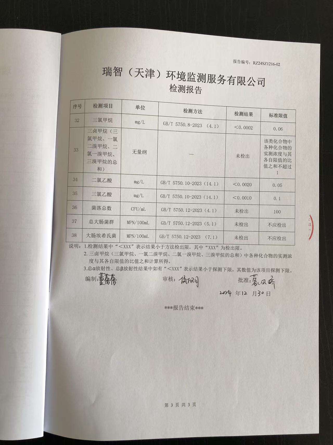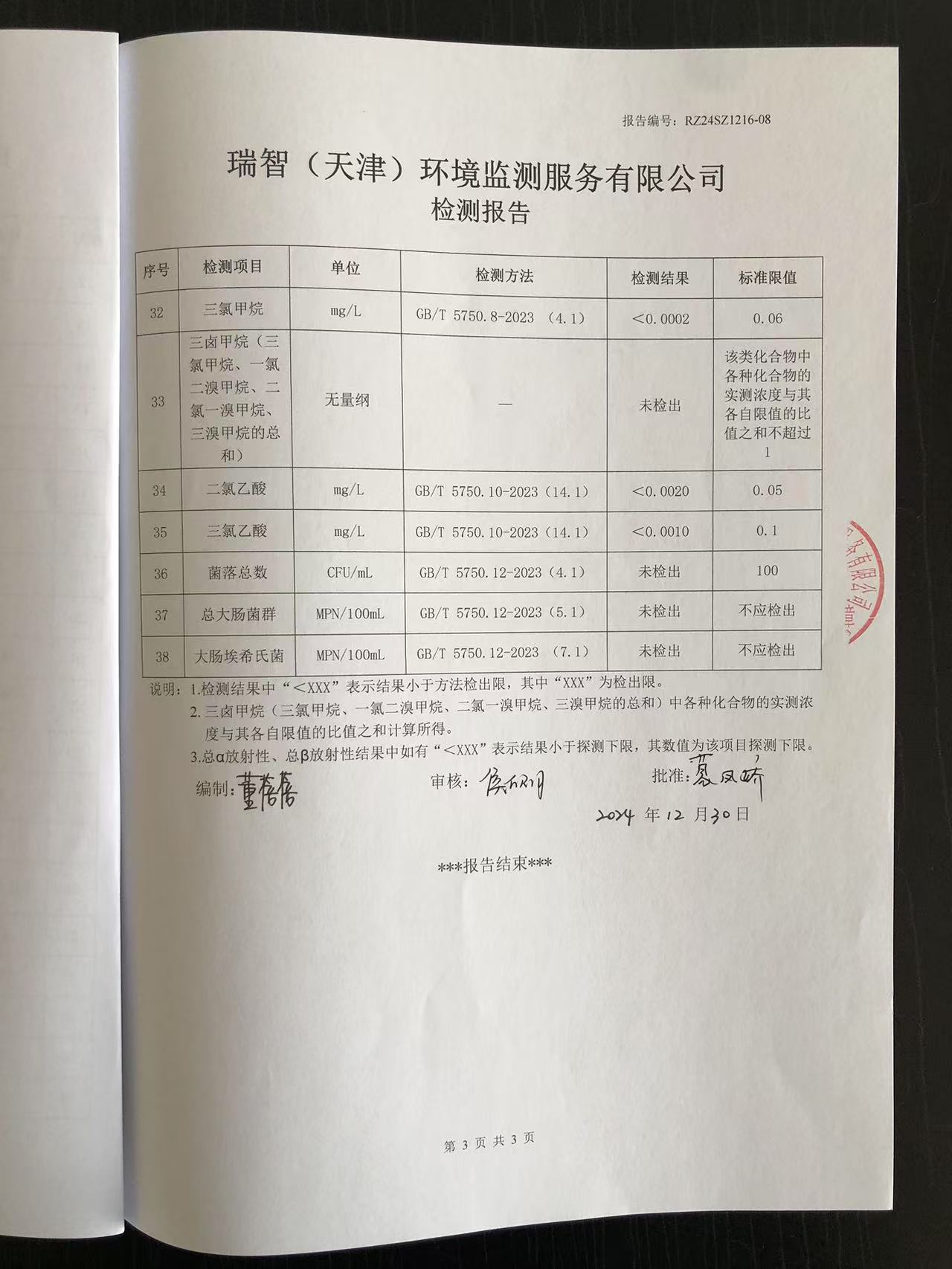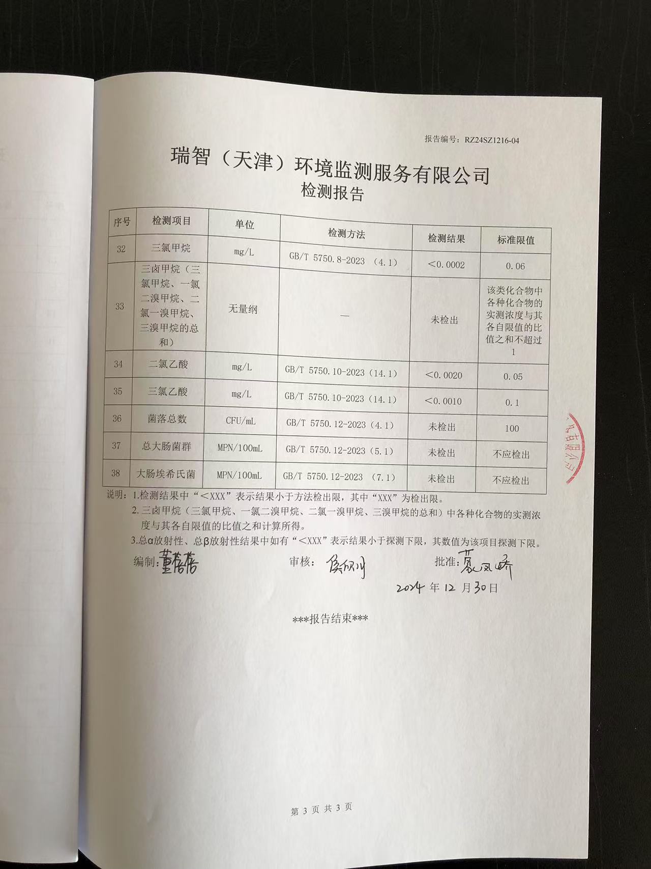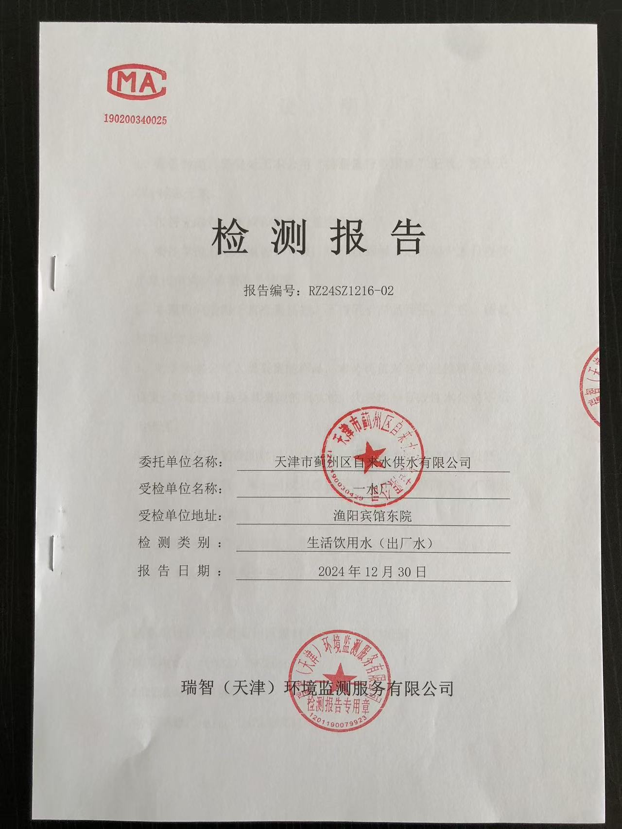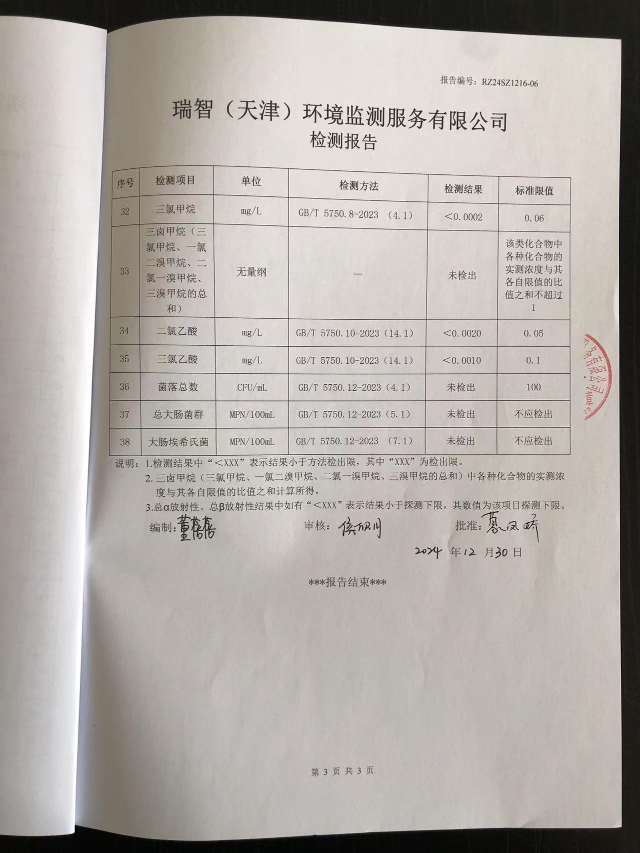 2024年12月份水質(zhì)檢測報(bào)告