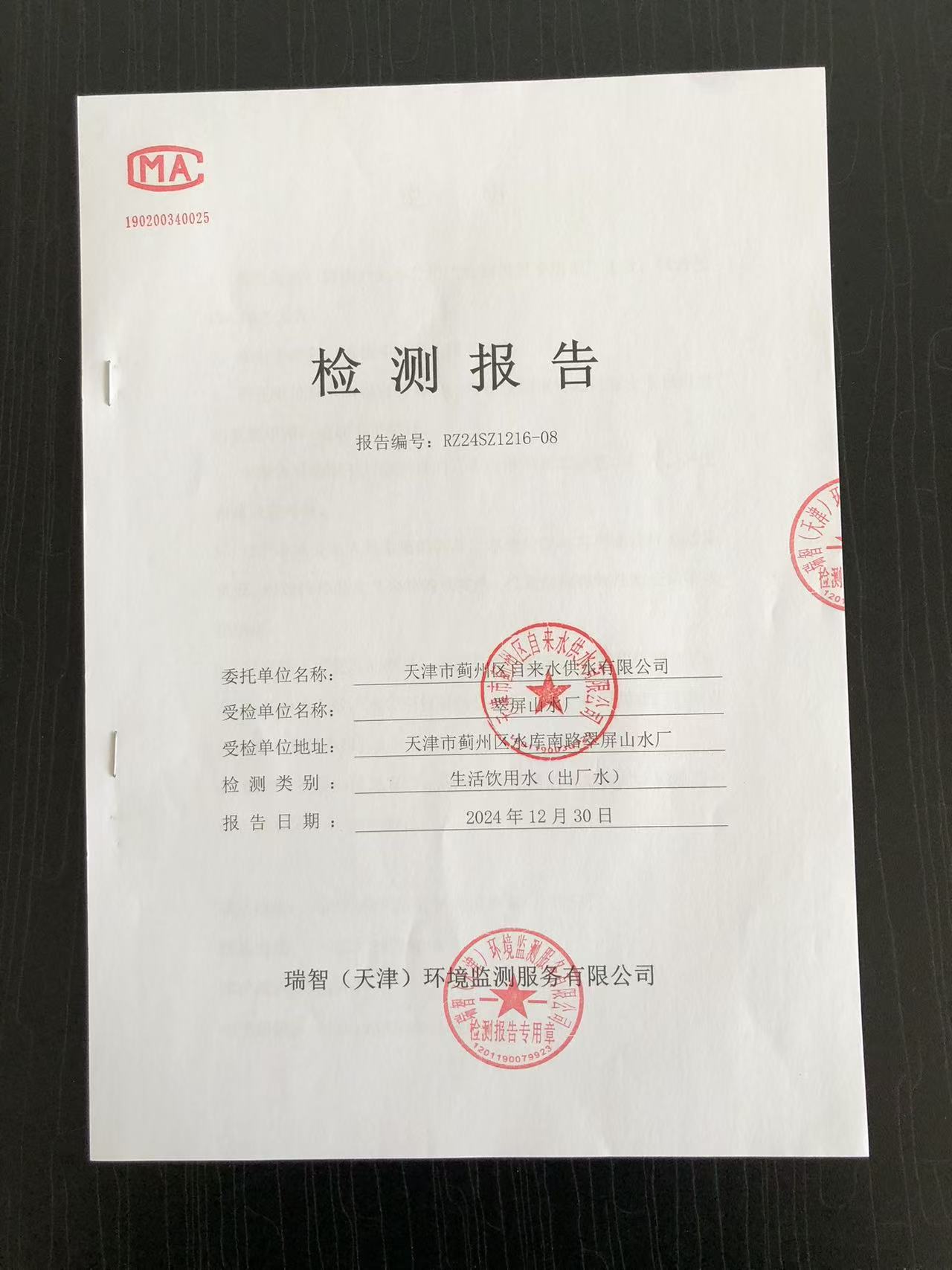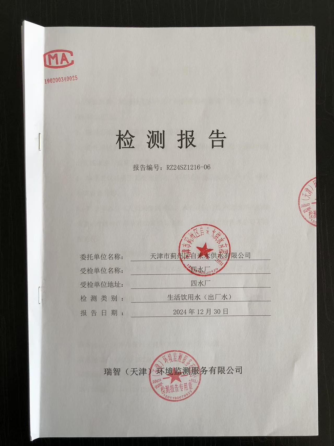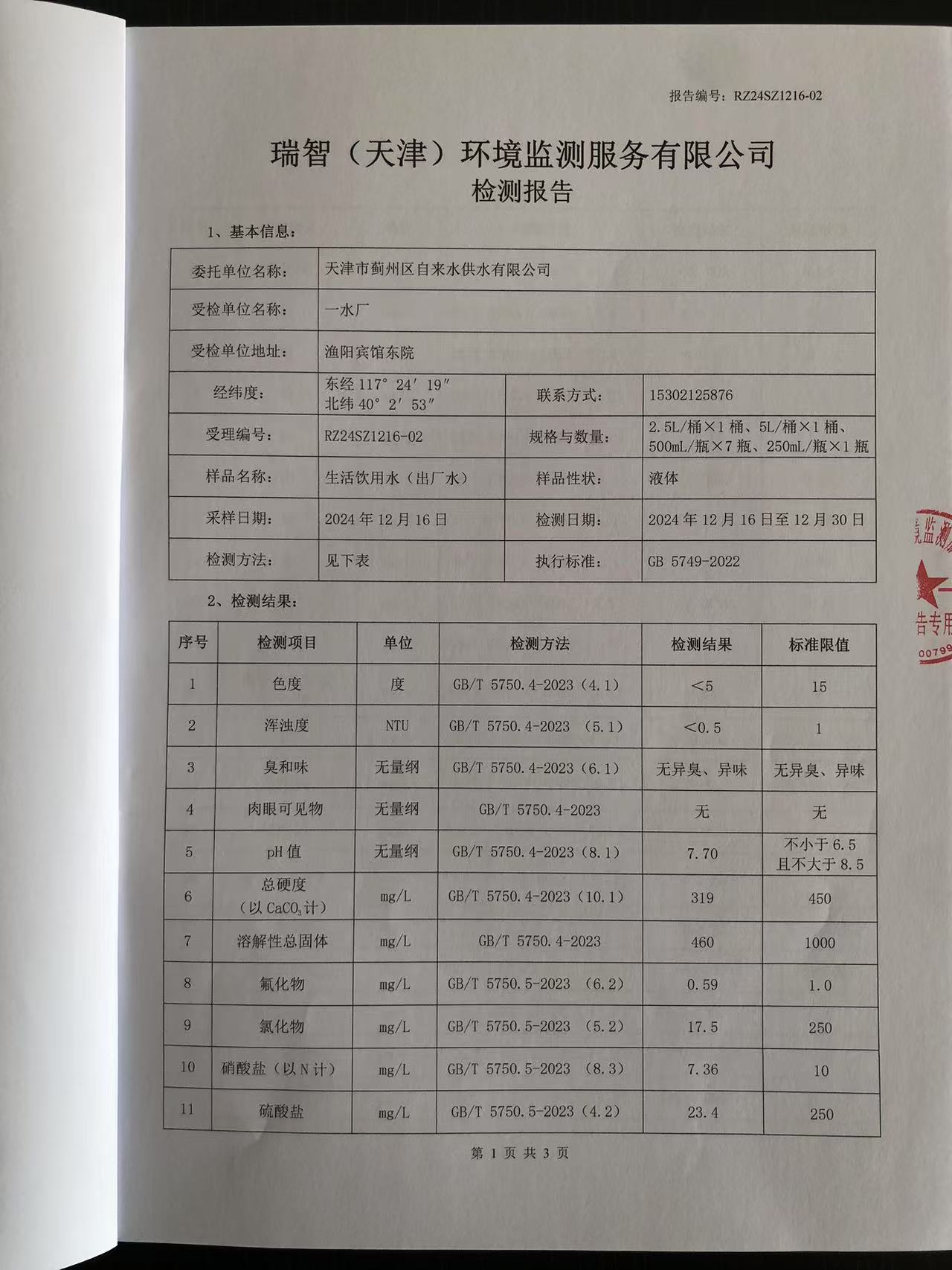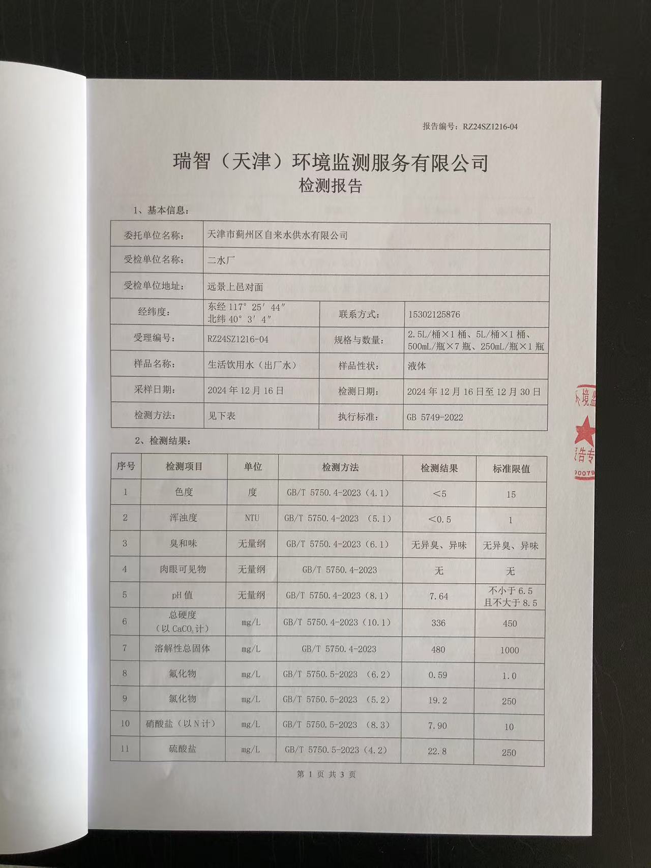2024年12月份水質(zhì)檢測報(bào)告