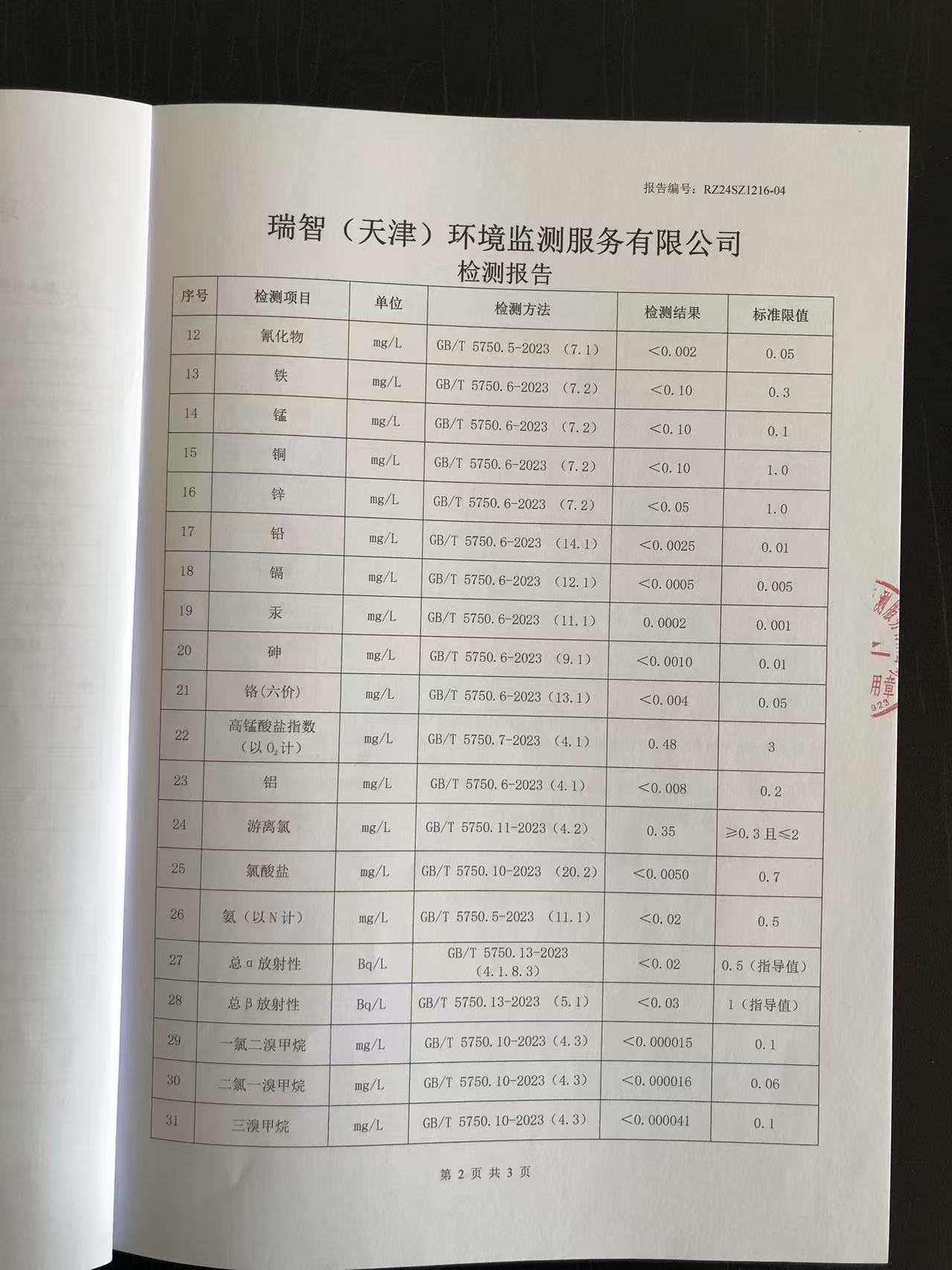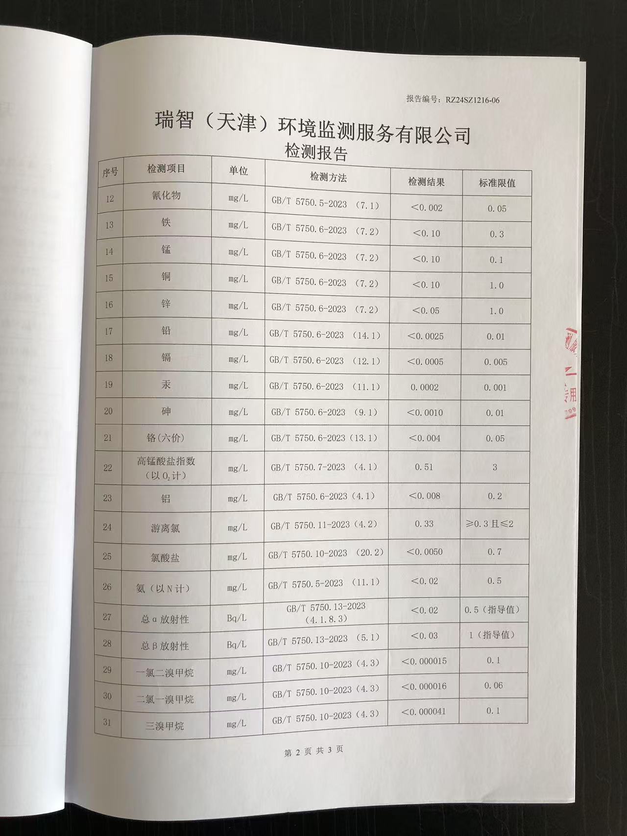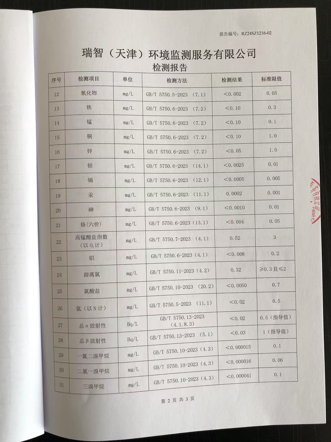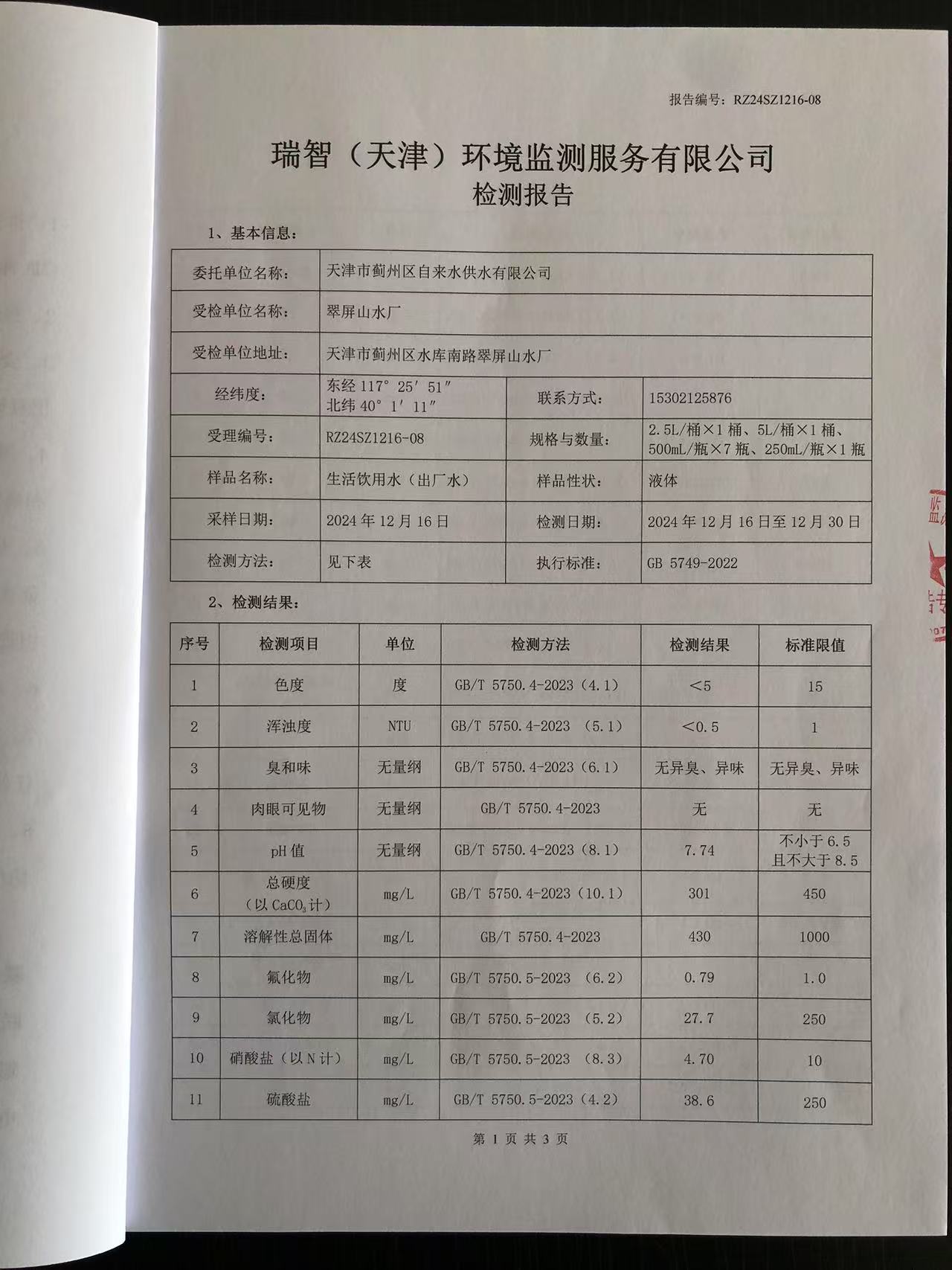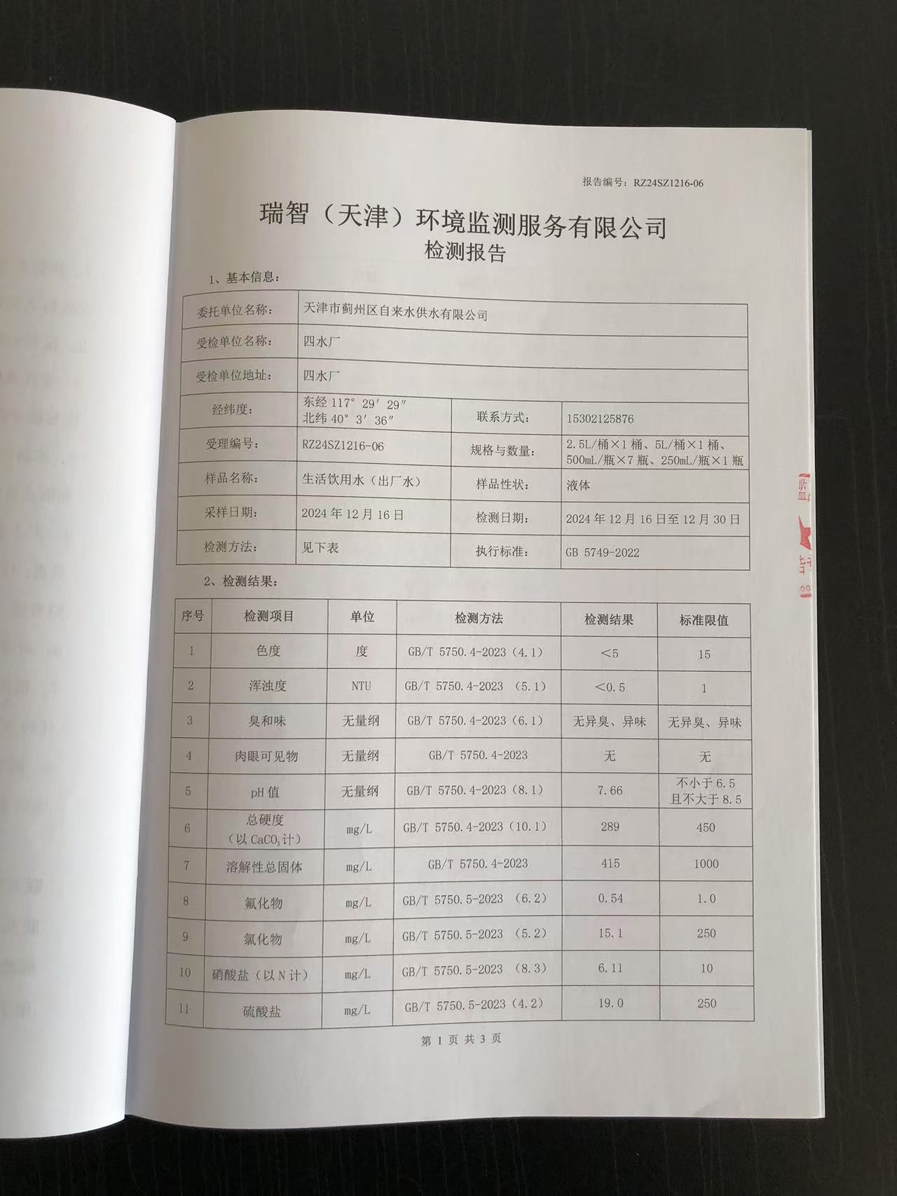 2024年12月份水質(zhì)檢測報(bào)告