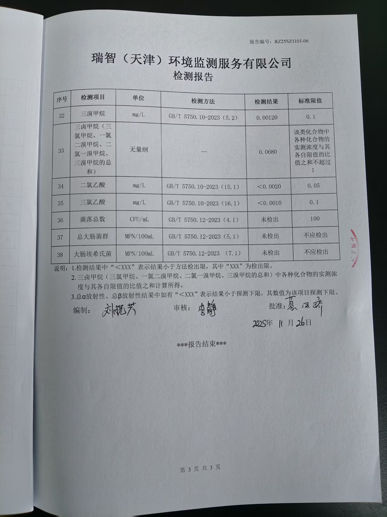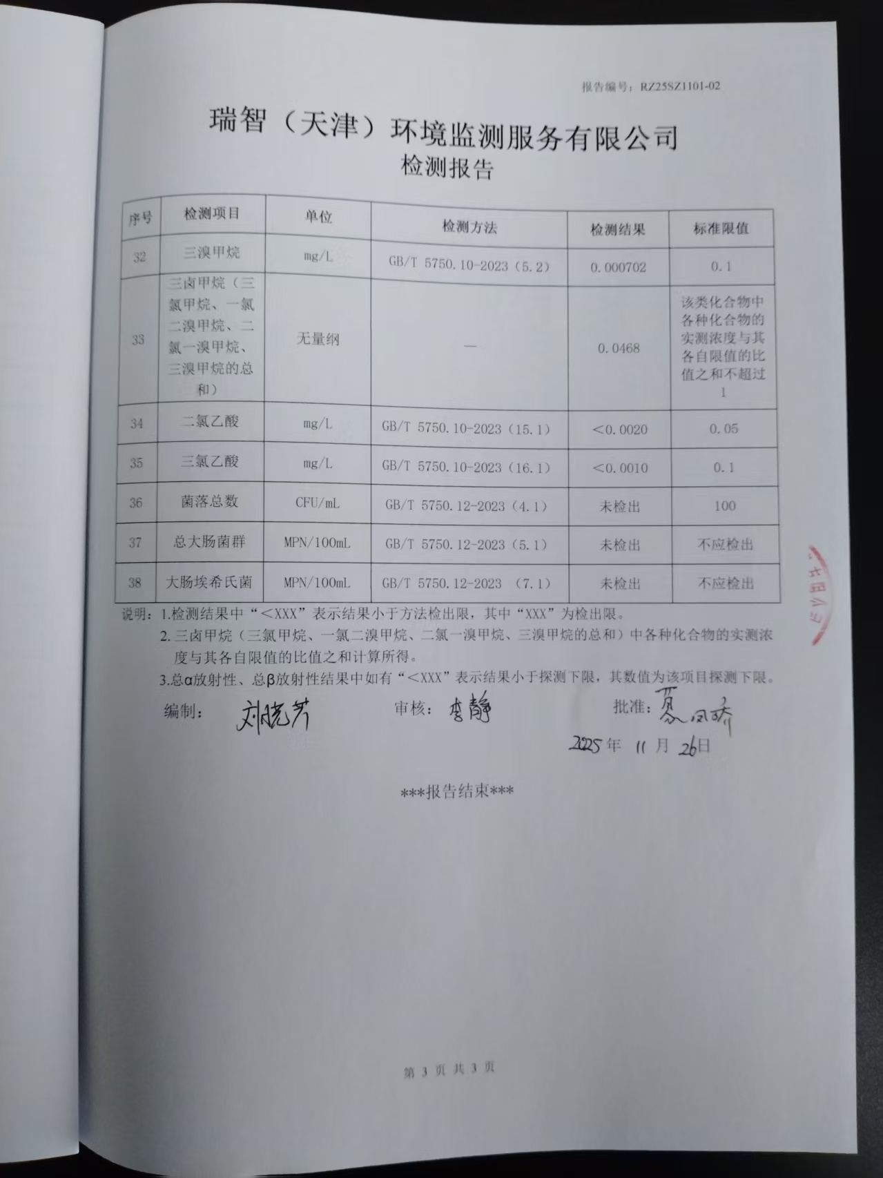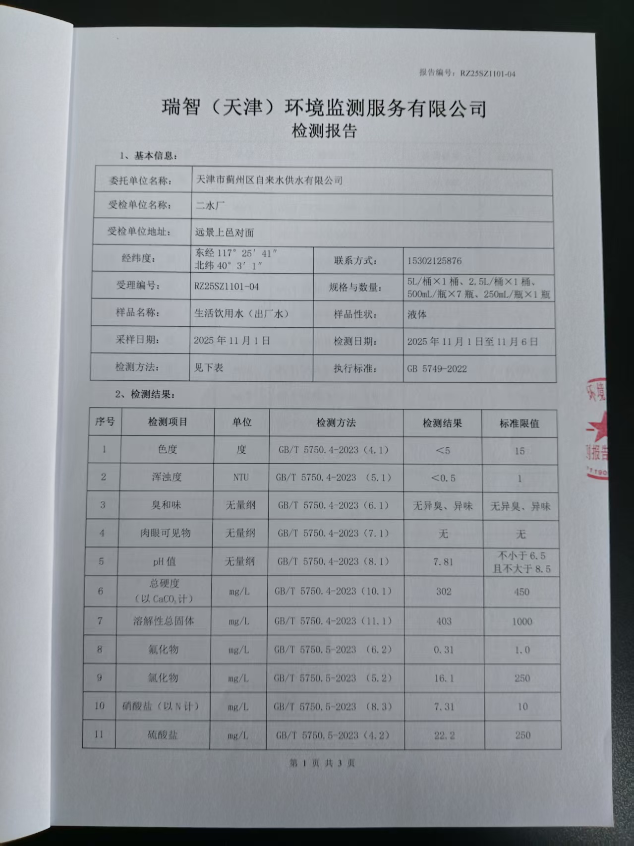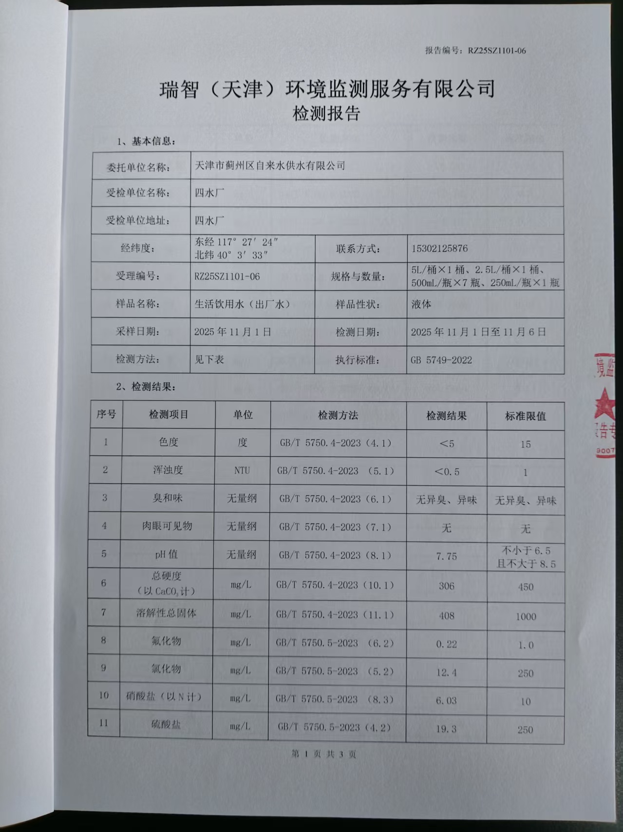 2025年11月份水質(zhì)檢測報(bào)告