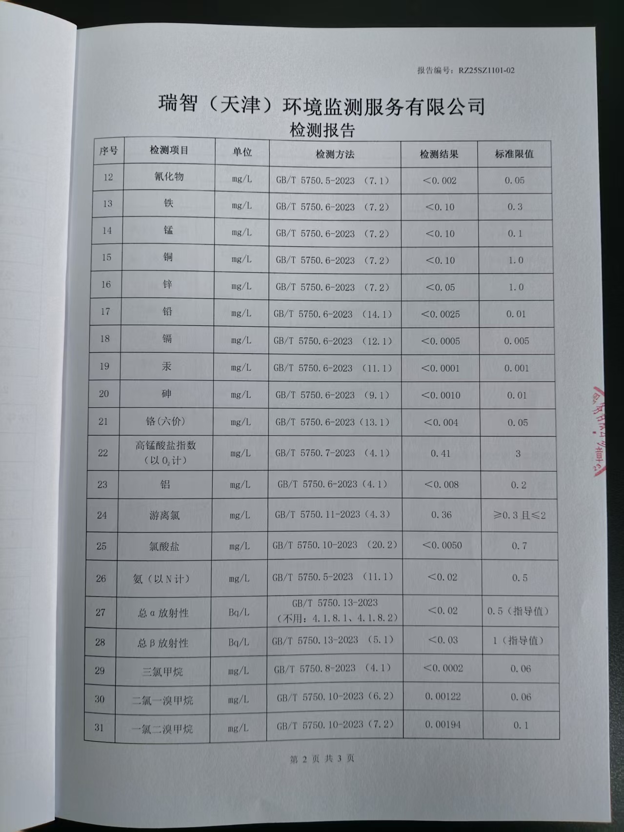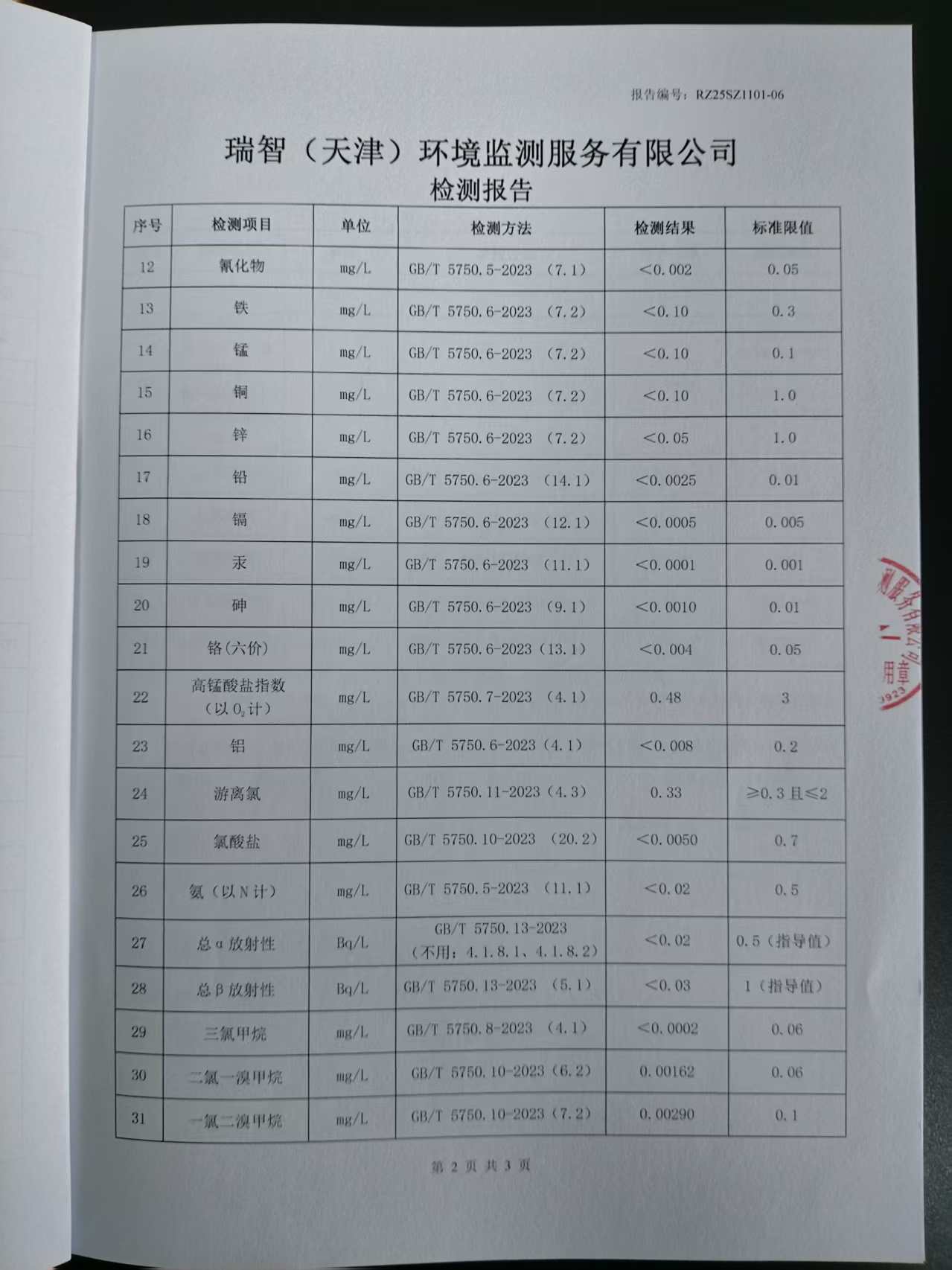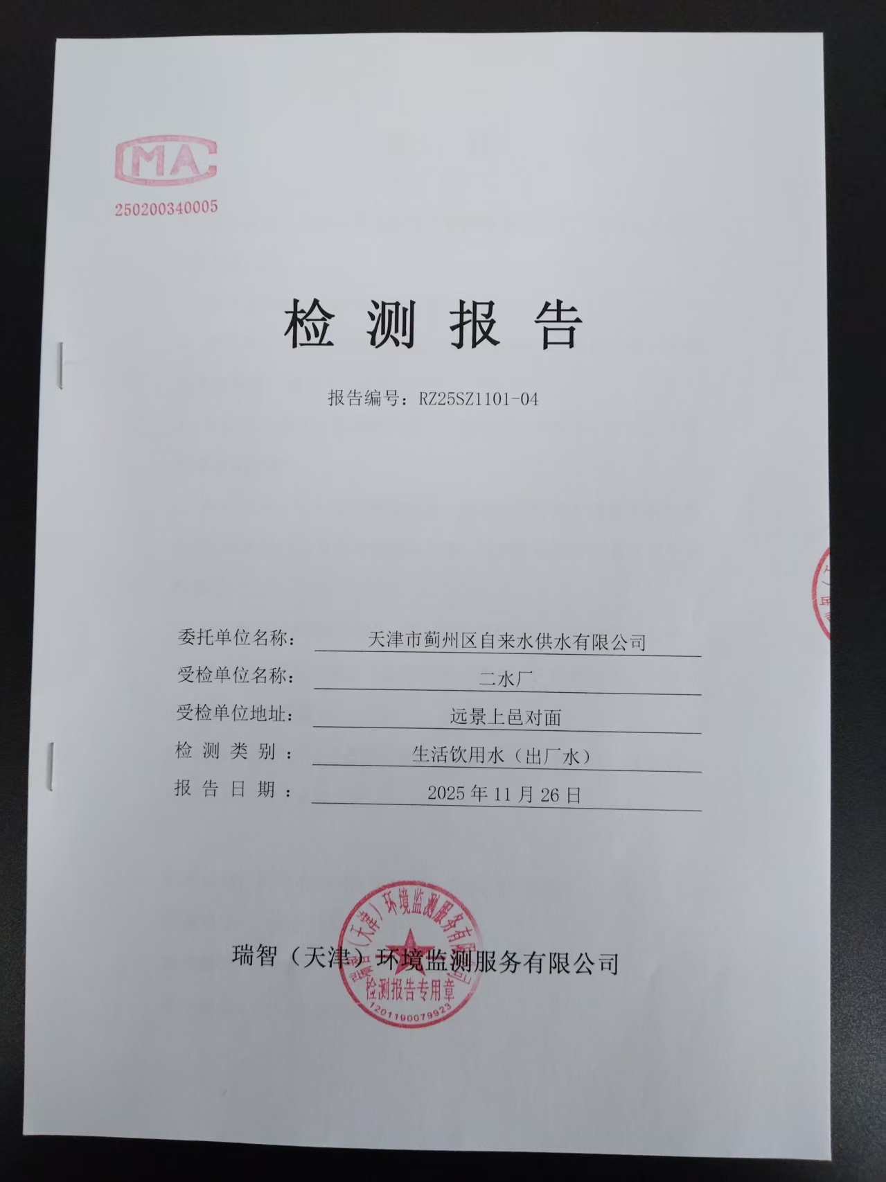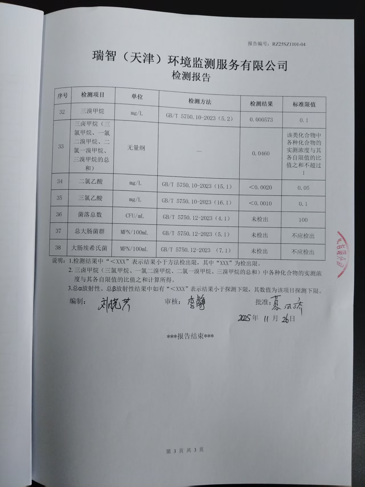 2025年11月份水質(zhì)檢測報(bào)告
