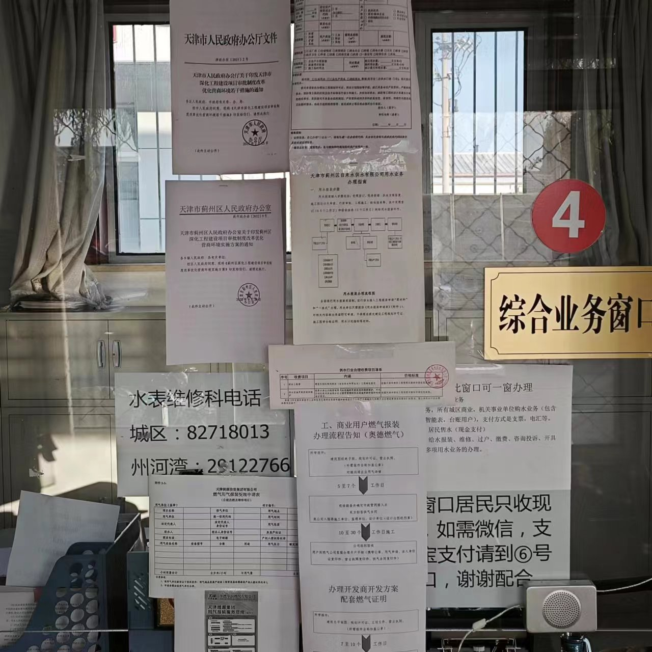 天津市薊州區(qū)自來水供水有限公司落實一窗綜合受理的有關(guān)文件精神,在供水營業(yè)廳內(nèi)設(shè)置綜合業(yè)務(wù)窗口實現(xiàn)多項供水服務(wù)一窗式辦理。